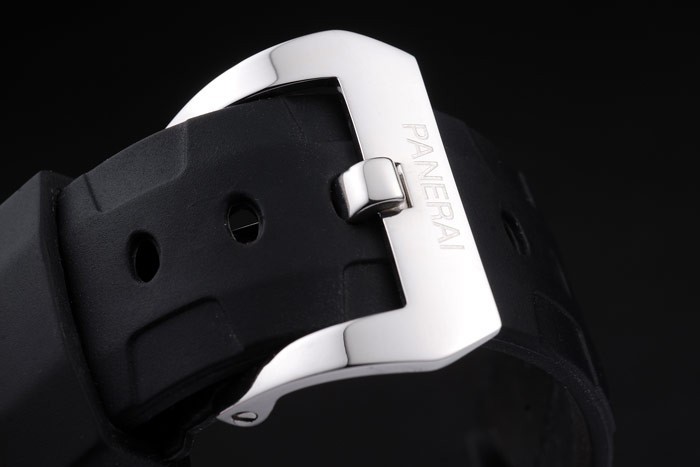 Armbånd: Sort Gummibånd med varmeprægede workshops Panerai Strap og børstet rustfrit stål Fold-in kroge lås