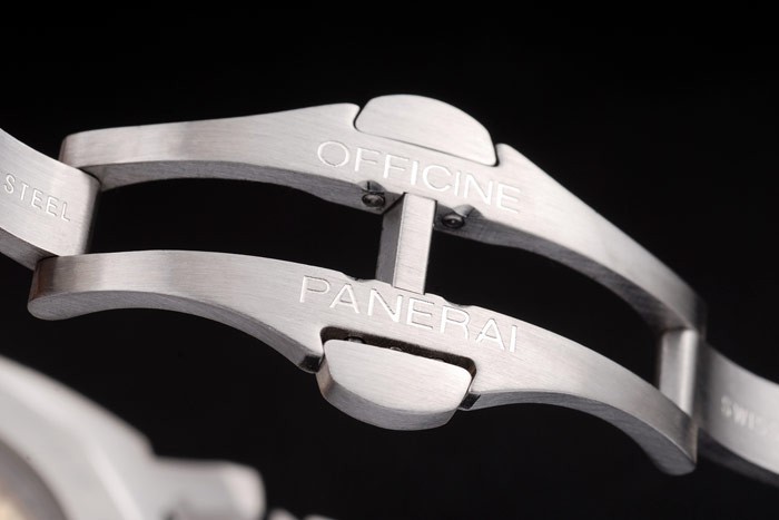 Armbånd: Børstet og poleret rustfrit stål link armbånd med workshops panerai indgraveret skjult lås