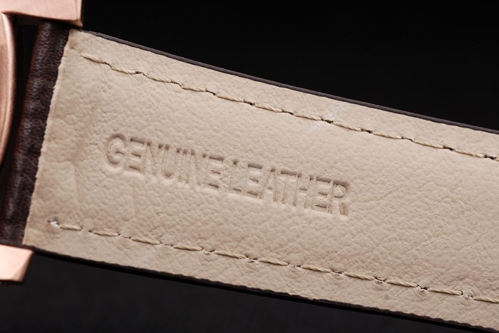 Armbånd: Brun læderrem med hvidstitching og varmeprægede luminorpanerai Stempel og 18k Rose-Gold Plated Hook-Buckle Clasp med Panerai Gravering