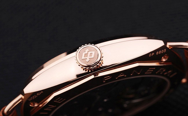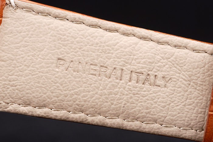 Dette ur har glas glas. Ansigtsfarven vises forskellige farver afhængigt af, hvordan lyset falder på ITBATCH: skrue, fast 440 rustfrit stål, indgraveret med Panerai-navn