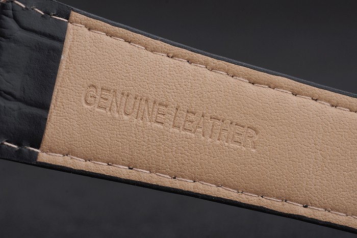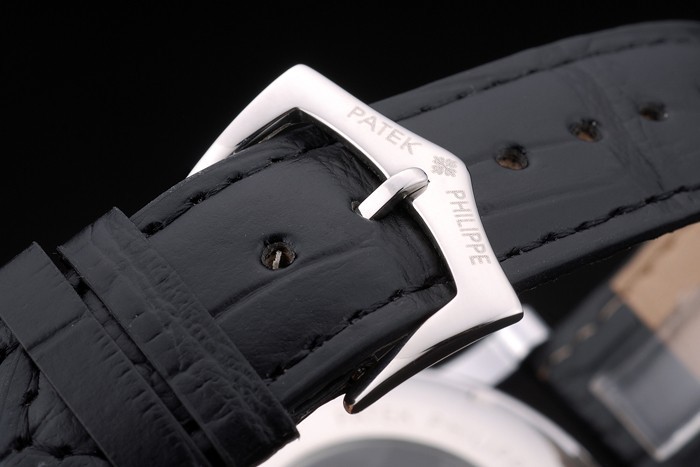 Armbånd: Sort Crocodile Læderrem med varmeprægede Patek Philippe Stempel og poleret rustfrit stål Hook-Buckle Clasp med Patek Philippe Gravure