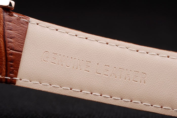 Armbånd: Brun krokodille Læderrem med varmeprægede Patek Philippe Stempel og 18K Rose-forgyldt Hook-Buckle Clasp med Patek Philippe Gravering