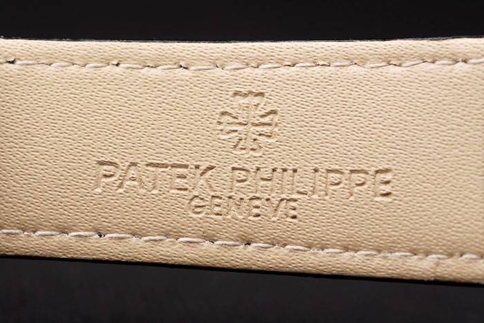 Armbånd: Sort Crocodile Læderrem med varme Præget Patek Philippe Stempel og poleret rustfrit stål Patek Philippe Logo Hook-Buckle Clasp