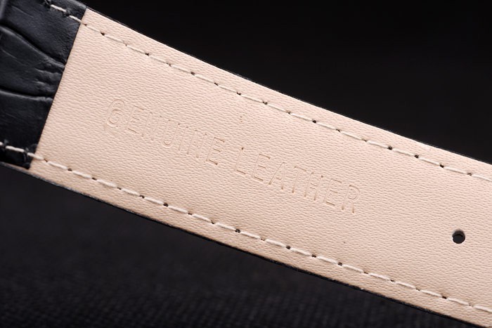 Armbånd: Sort Crocodile Læder Rem med varmeprægede Patek Philippe Stempel og poleret rustfrit stål Hook-Buckle Clasp med Patek Philippe Gravure