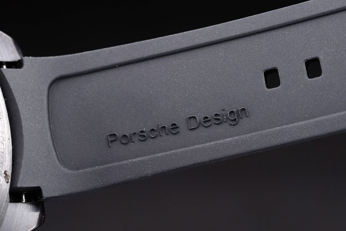 Armbånd: Tire-Groove Sort Gummibånd med Varmeprægede Porsche Stempel og ionbelagt krogspændelås med Porsche Inscription