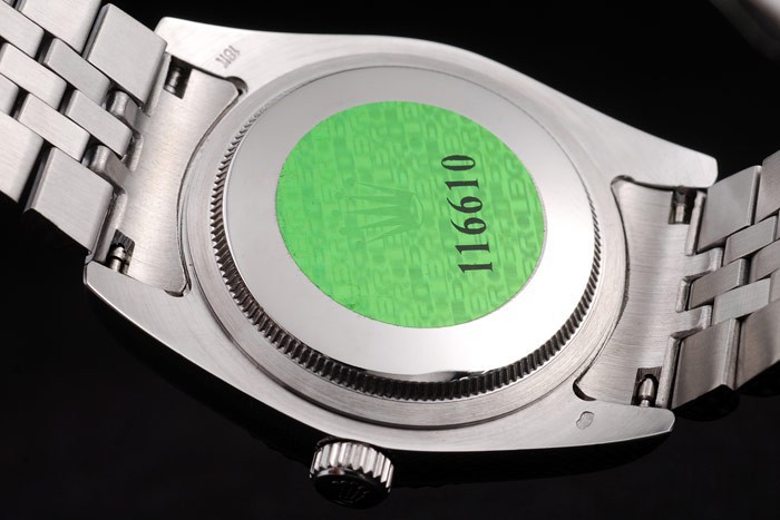 Tilbage: Rustfrit stål Push-In Case Tilbage med Green Rolex Logo Stempel