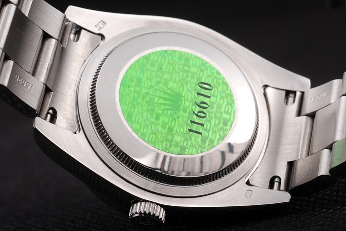 Tilbage: Rustfrit stål Push-In Case Tilbage med Green Rolex Logo Stempel