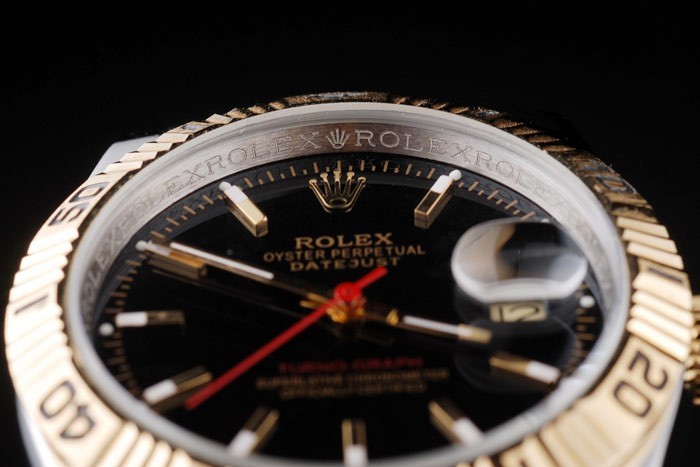 bezel: 18k Gul Forgyldt Rustfrit stål Cutwork Bezel med sorte minut markører
