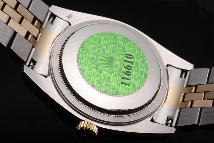 Tilbage: Rustfrit stål Push-In Case Tilbage med Green Rolex Logo Stempel