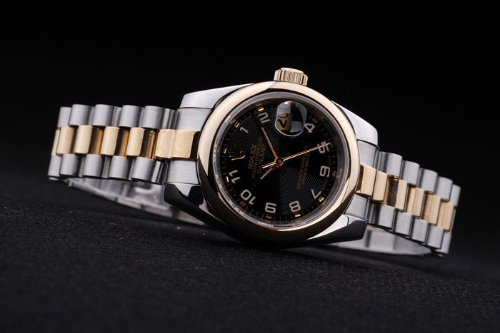 Armbånd: To tonet tredobbelt linkarmbånd i poleret rustfrit stål og 18K Gult forgyldt stål med Rolex Gravering Hidden Clasp Visning af Rolex Logo