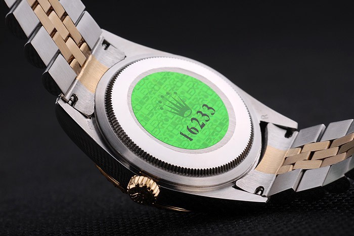 Tilbage: Rustfrit stål Push-In Case Tilbage med Green Rolex Logo Stempel