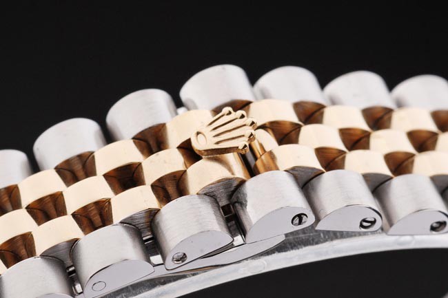 Armbånd: Børstet rustfrit stål og gul Guldkæde med fold over lås og Rolex Krongravering