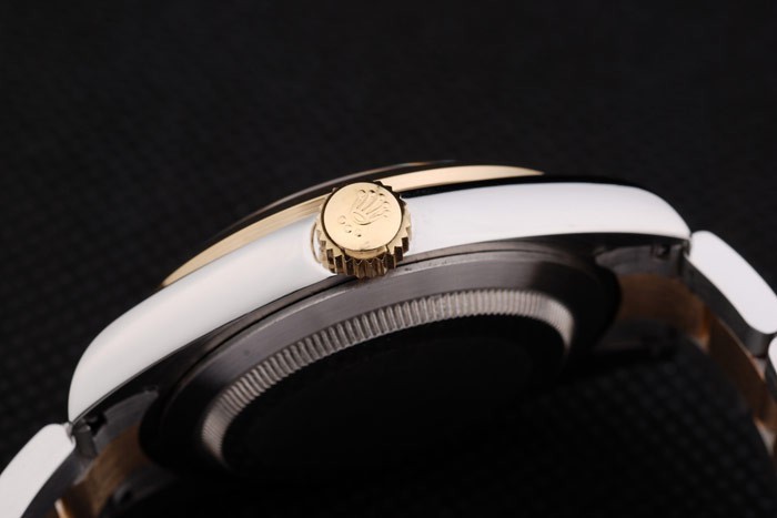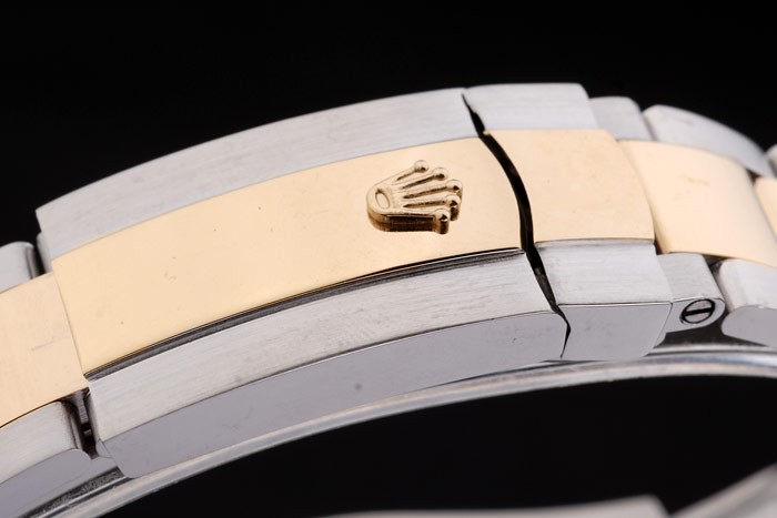 Armbånd: Børstet rustfrit stål og Gul Guld Link Kæde med fold over lås og Rolex Krongravering