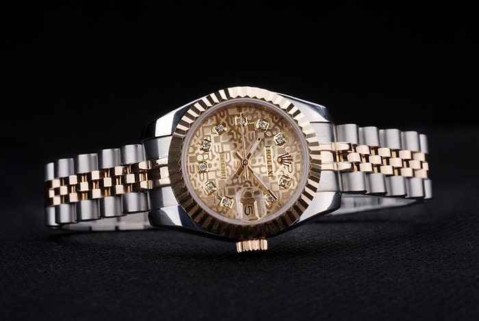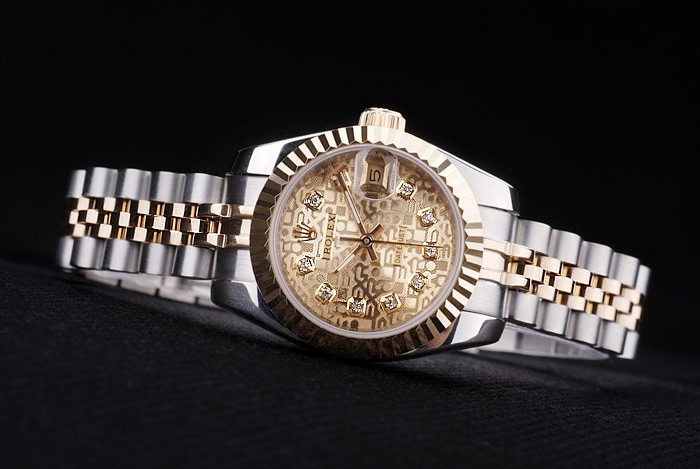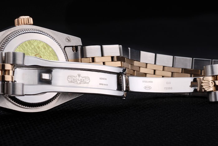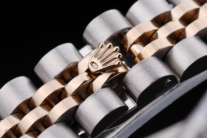 Armbånd: To tonet linkarmbånd i børstet rustfrit stål og 18k gul forgyldt stål med Rolex gravering skjult lås, der viser Rolex logo