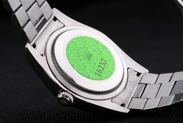 Tilbage: Rustfrit stål Push-In Case Tilbage med Green Rolex Logo Stempel
