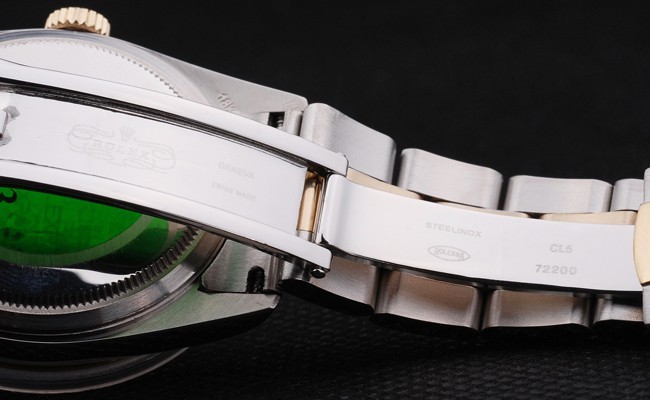 Tilbage: Rustfrit stål Push-In Case Tilbage med Green Rolex Logo Stempel