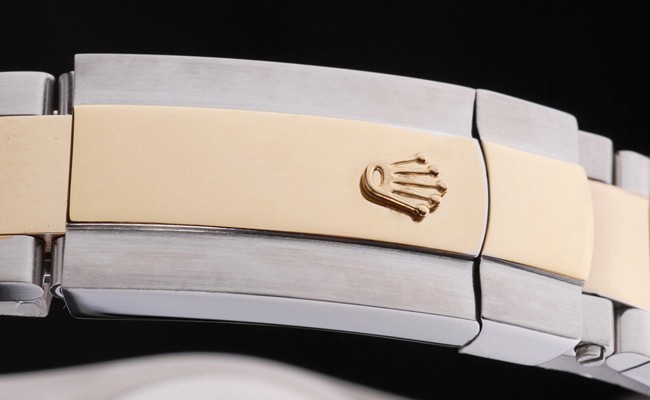 Armbånd: To tonet linkarmbånd i børstet rustfrit stål og 18K Gult forgyldt stål med Rolex Gravering Fold-in Deployment Clasp Visning af Rolex logo