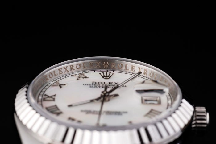 Tilbage: Skub i rustfrit stål tilbage med grønt Rolex Klistermærke og markeringer