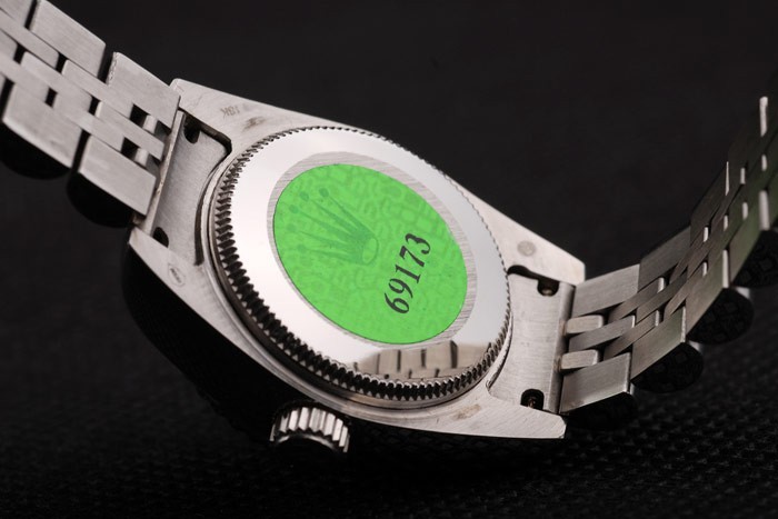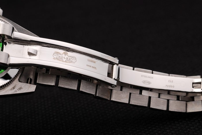 1BACK: Skub i rustfrit stål tilbage med grønt Rolex Klistermærke og markeringer