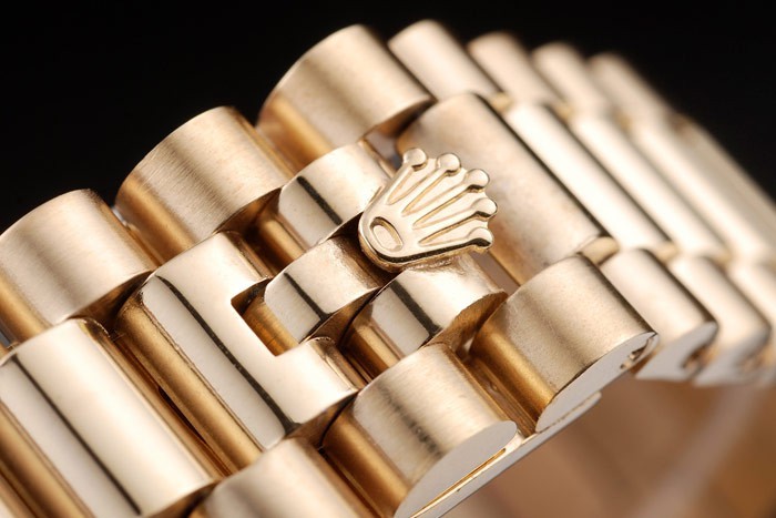Armbånd: 18K Gult Forgyldt Rustfrit stål Link Armbånd med Rolex Graveret Skjult lås Viser Rolex Logo