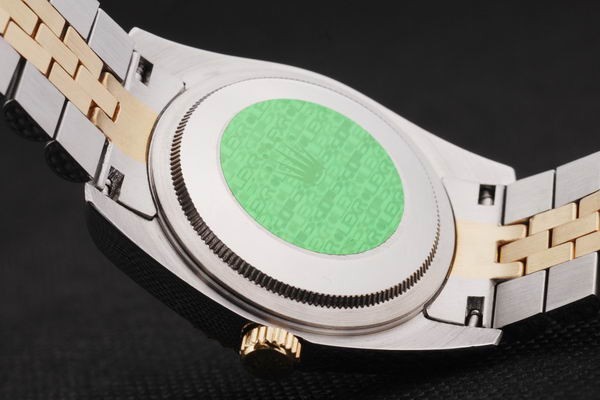 Tilbage: Skub i rustfrit stål tilbage med grønt Rolex Klistermærke og markeringer