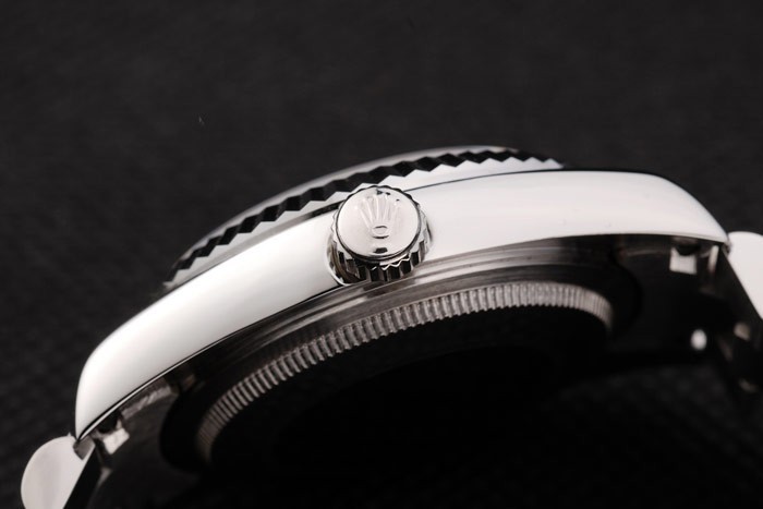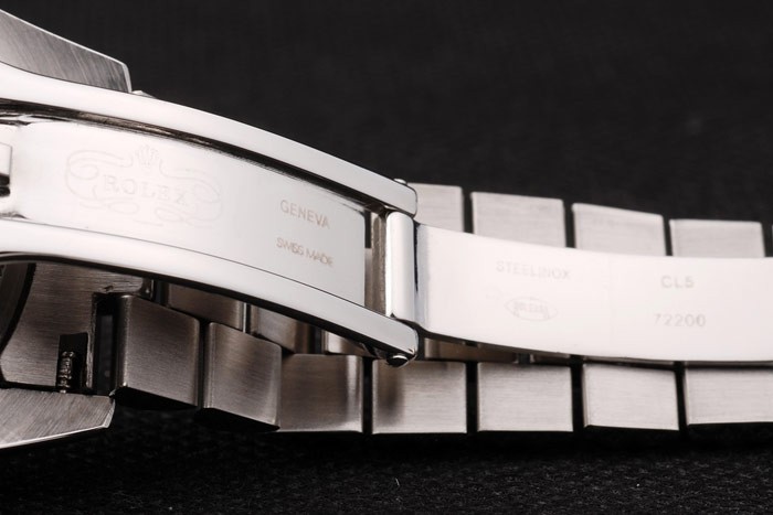 Tilbage: Skub i rustfrit stål tilbage med grønt Rolex Klistermærke og markeringer