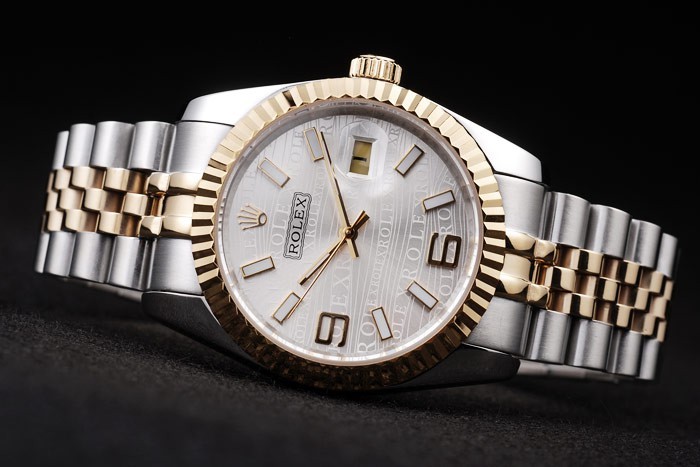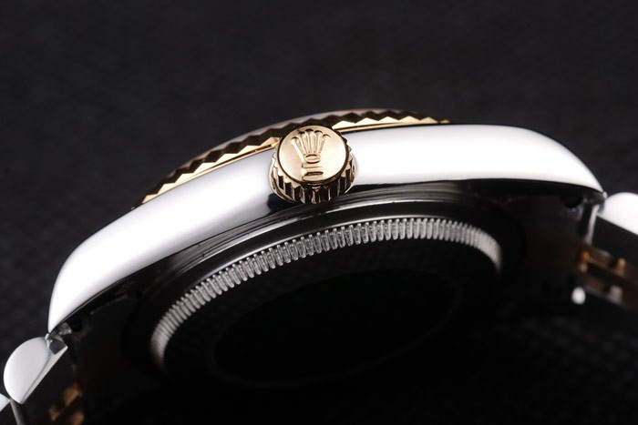 Armbånd: To tonet linkarmbånd i børstet rustfrit stål og 18K gul forgyldt stål med Rolex indgraveret skjult lås, der viser Rolex-logoet