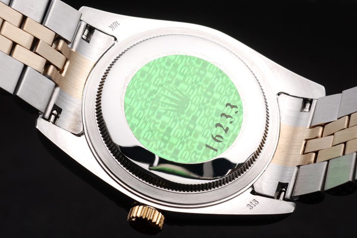 Tilbage: Rustfrit stål Push-In Case Tilbage med Green Rolex Logo Stempel