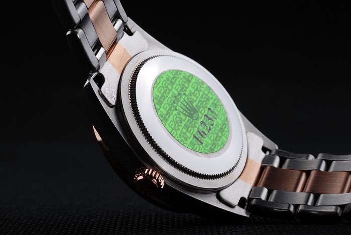 Tilbage: Rustfrit stål Push-In Case Tilbage med Green Rolex Logo Stempel