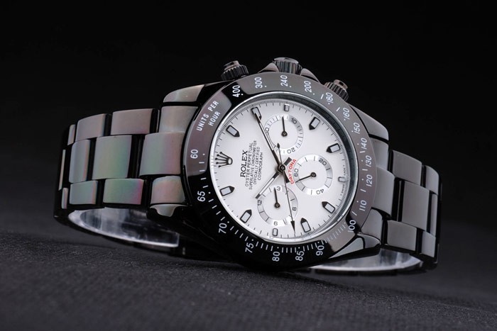 Armbånd: Sort emaljeret rustfrit stål Link armbånd med Rolex Gravure Deployment Clasp Visning af Rolex Logo