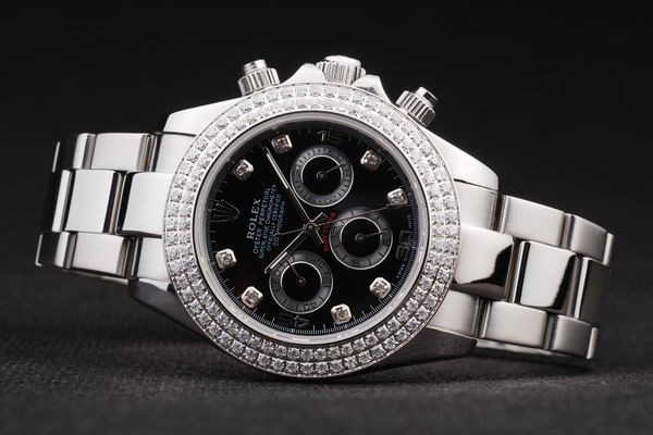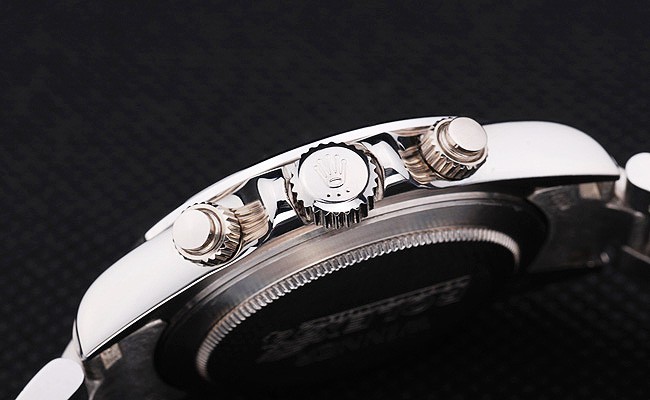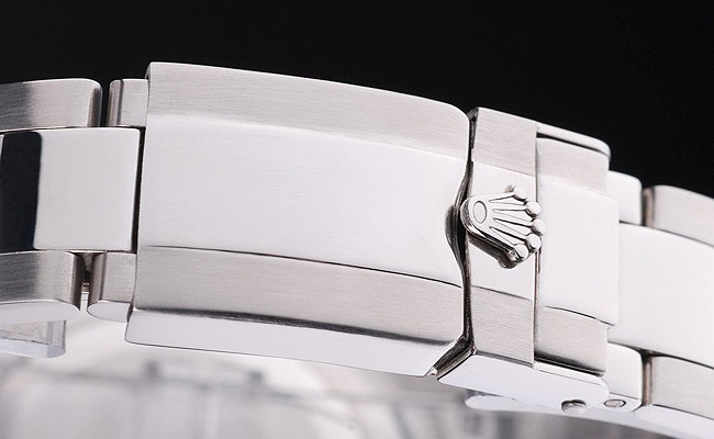 Crown: Poleret rustfrit stål cutwork krone med Rolex logo og to ekstra kroner på begge sider af det