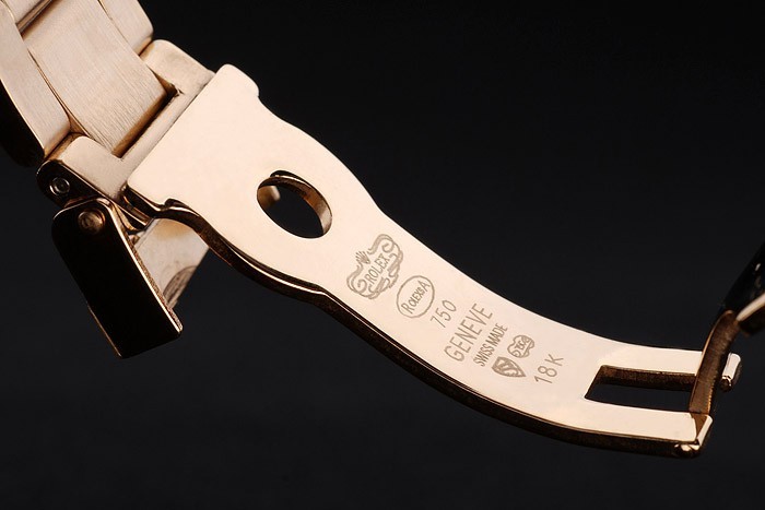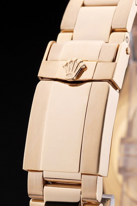 Armbånd: Guld tonet rustfrit stål Link Armbånd med Rolex Gravure Deployment Clasp Visning af Rolex Logo