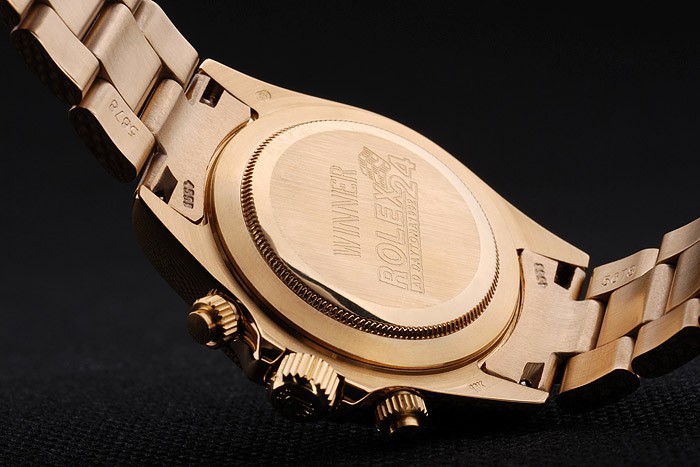 Tilbage: Gold-tonet rustfrit stål push-in tilfælde tilbage med Rolex Gravering