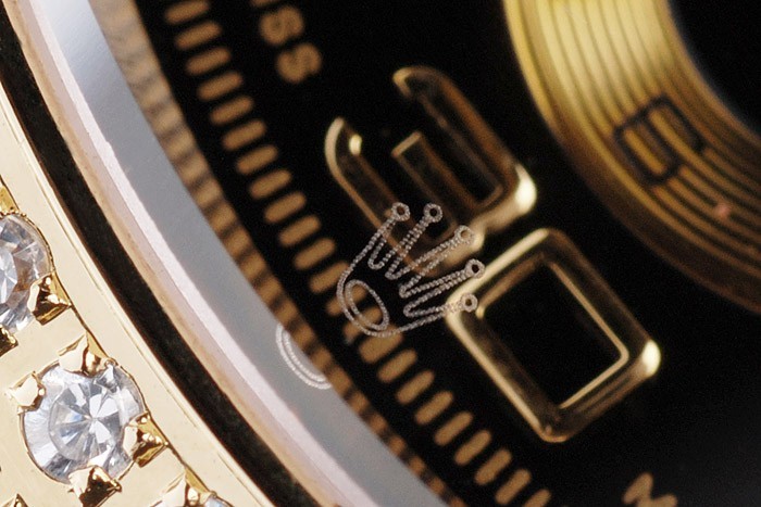 Crown: Guldtonet Cutwork Crown med Rolex logo og to ekstra kroner på begge sider af det