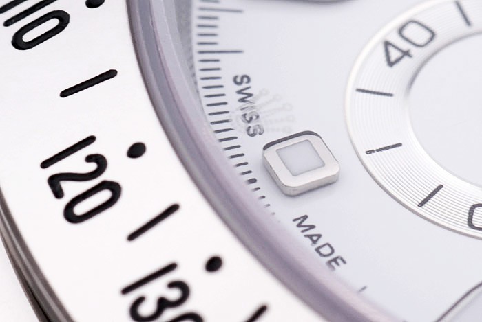 bezel: Poleret rustfrit stål bezel med enheder pr. Time Indikator