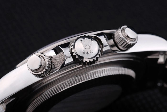 Crown: Poleret rustfrit stål Cutwork krone med Rolex logo og to ekstra kroner på begge sider af det