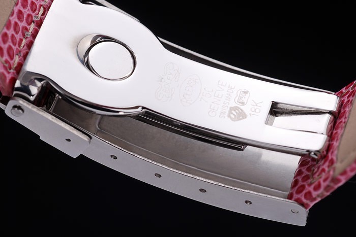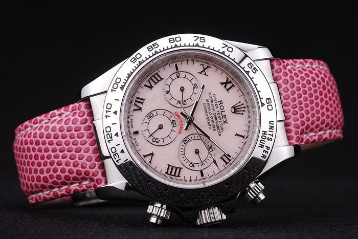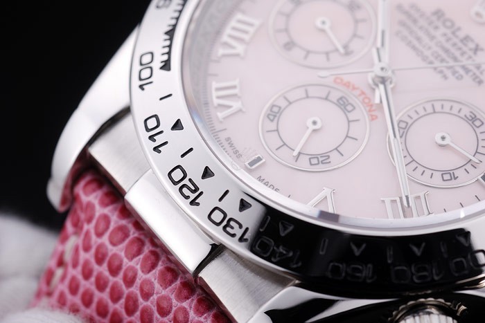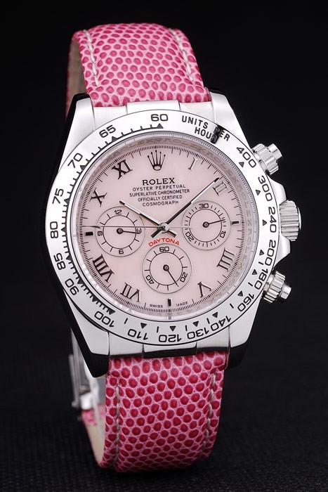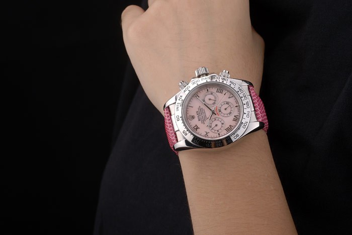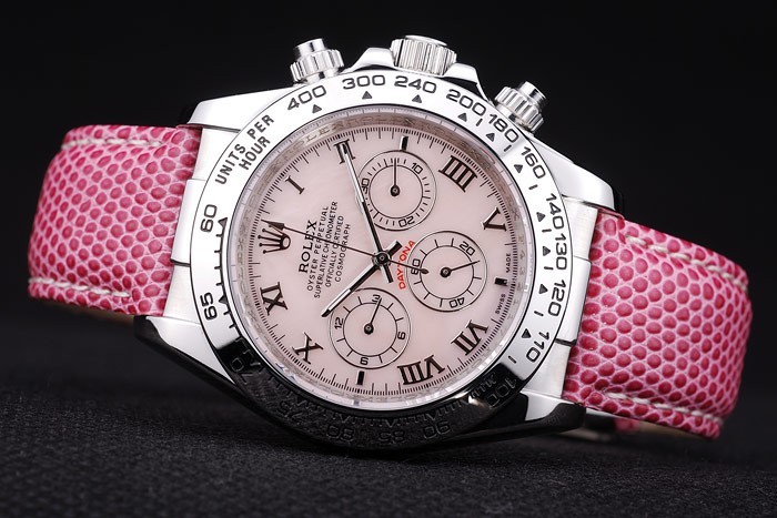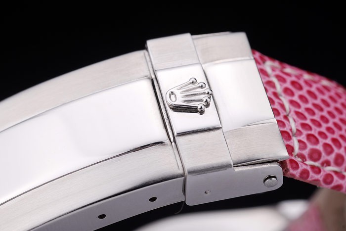 Armbånd: Pink Snake Læderrem med Rolex og logo gravering og rustfrit stål Deployment Clasp Visning af Rolex Logo
