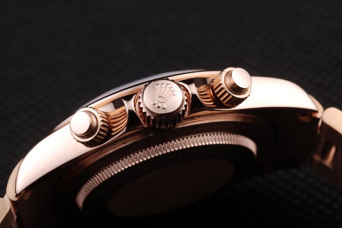 Crown: 18k Rose-Gold Cutwork Crown med Rolex logo og mindre kroner på begge sider af det