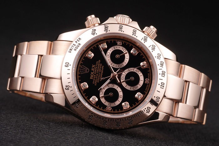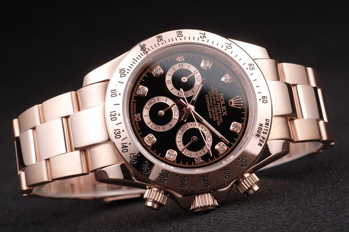 bezel: 18k rose-guld bezel med sorte enheder pr. Time markør