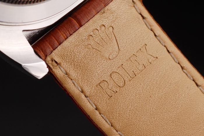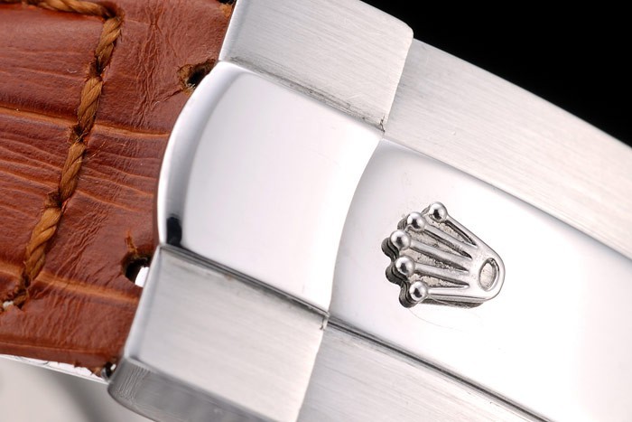 Armbånd: Rolex Varme præget brun krokodille Læderrem med indgraveret rustfrit stål Deployment Clasp med Rolex Logo på toppen