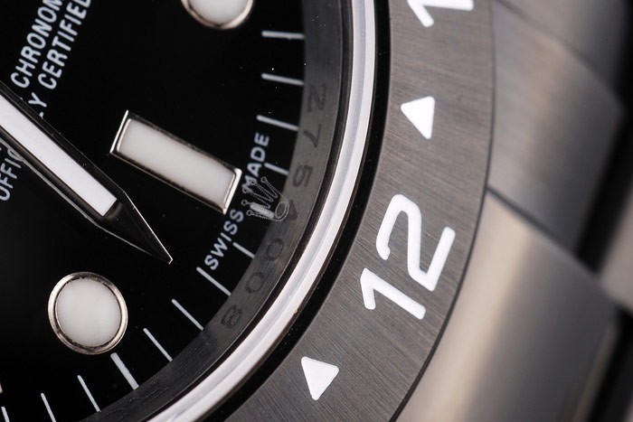 bezel: Sort keramisk cutwork bezel med sølv arabisk tal 24 -hour markører