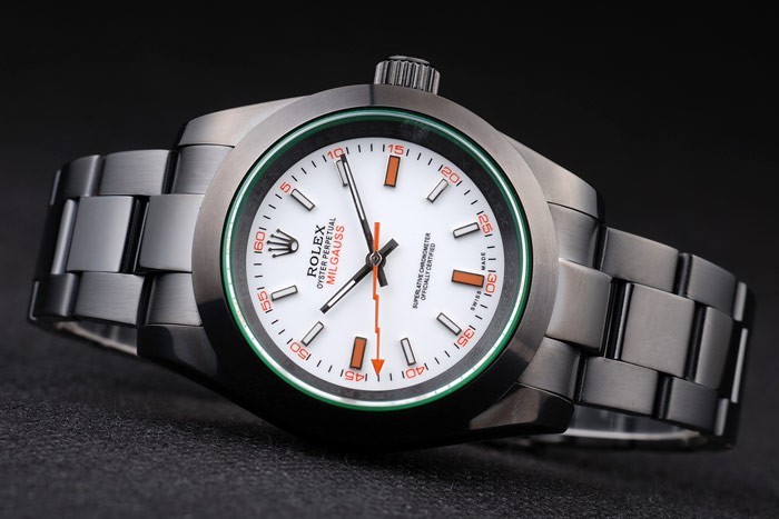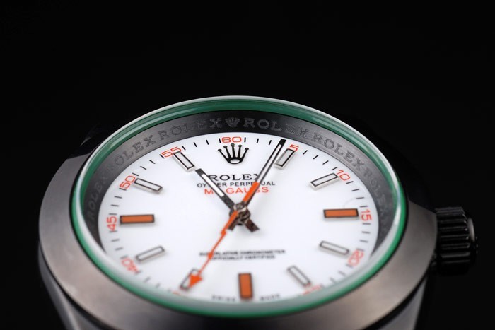 Tilbage: Ion-belagt rustfrit stål push-in tilfælde tilbage med grønt rolex logo stempel