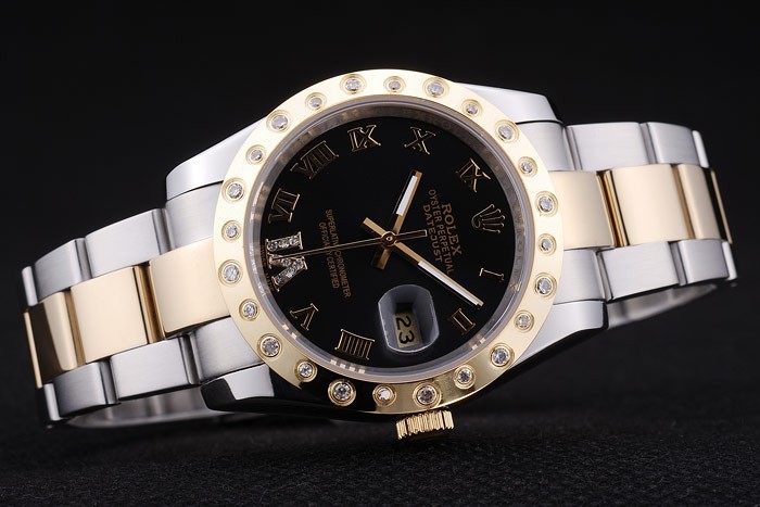 Armbånd: Børstet rustfrit stål og gul guld link armbånd med Rolex logo implementering lås
