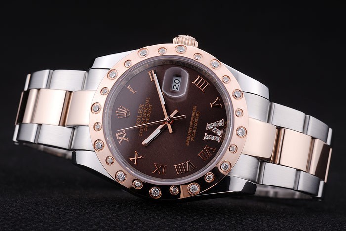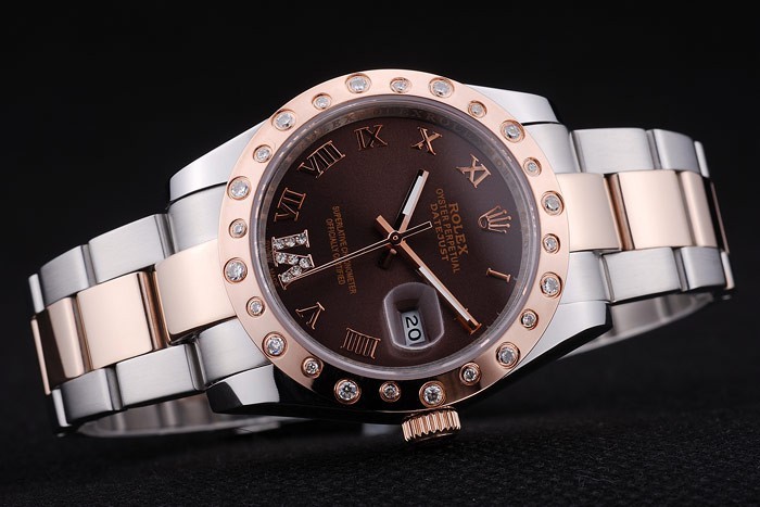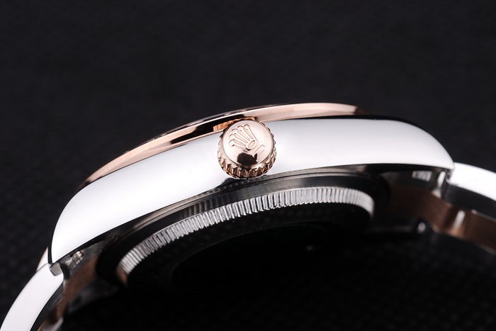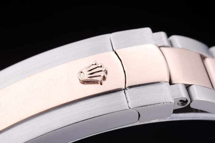 Armbånd: Børstet Rustfrit stål og Rose-Gold Link Armbånd med Rolex Logo Deployment Clasp
