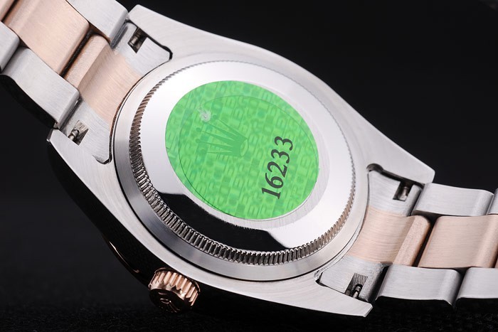 Tilbage: Rustfrit stål Snap-in Tilbage med Green Rolex Authenticity Sticker