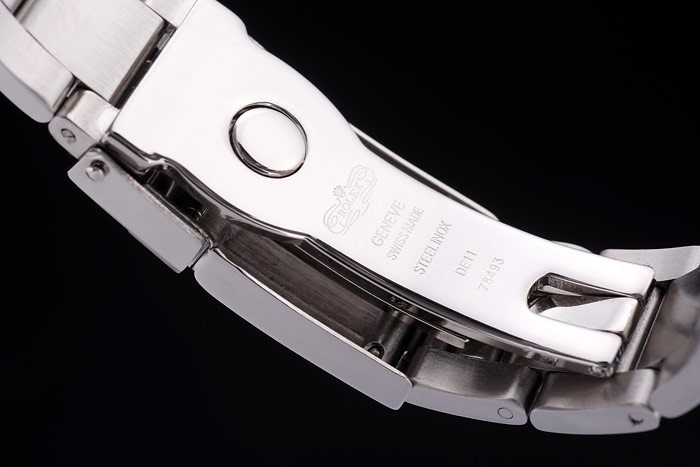 Crown: Poleret rustfrit stål cutwork krone med Rolex logo og to mindre cutwork push-button krone på begge sider af det