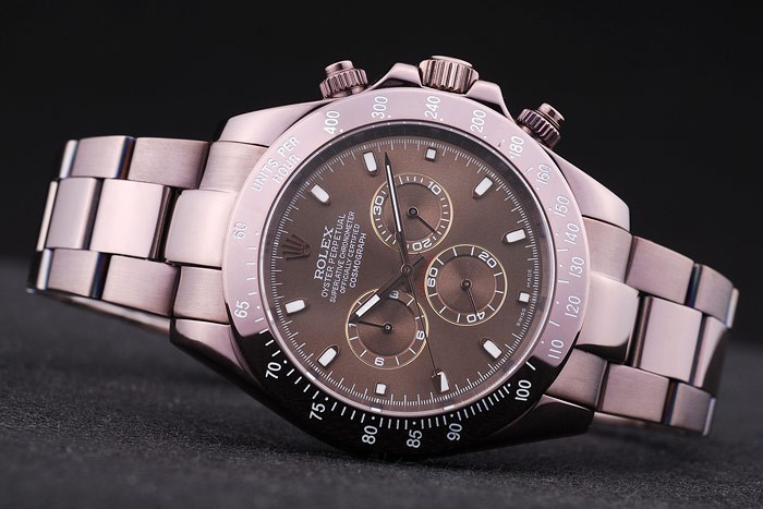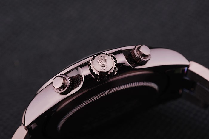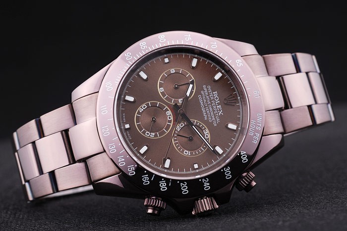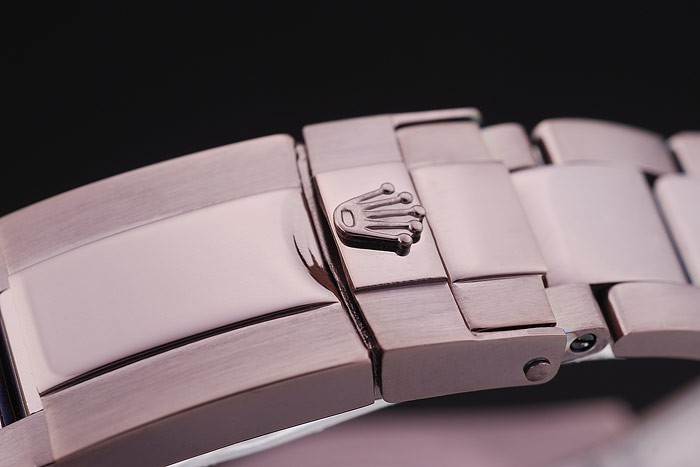 Crown: Rosy Brown Rustfrit Stål Cutwork Crown med Rolex logo og to mindre push-knap cutwork krone på enten Side af det