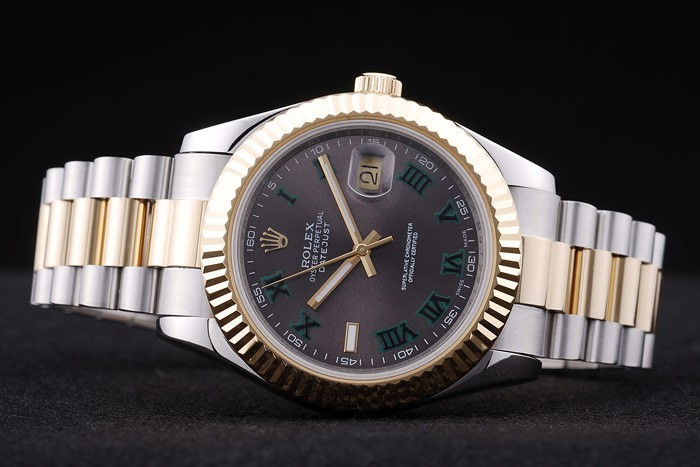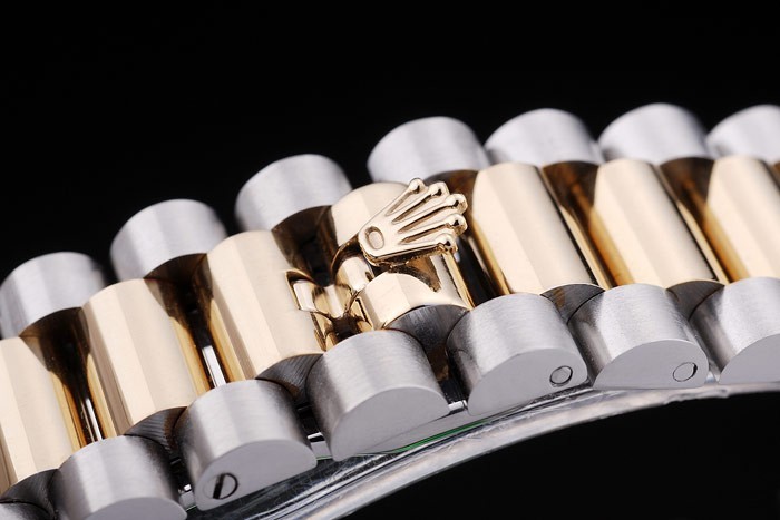 Armbånd: Børstet Rustfrit stål og gul Guld Link Armbånd med Rolex Logo Hidden Clasp