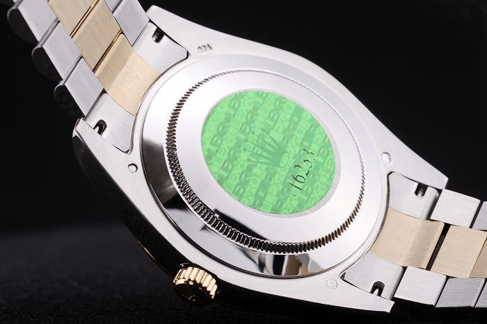Tilbage: Rustfrit stål Snap-in Tilbage med Green Rolex Authenticity Sticker