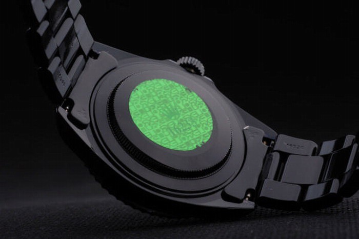 Tilbage: Ion-belagt rustfrit stål push-in tilfælde tilbage med grønt rolex logo stempel
